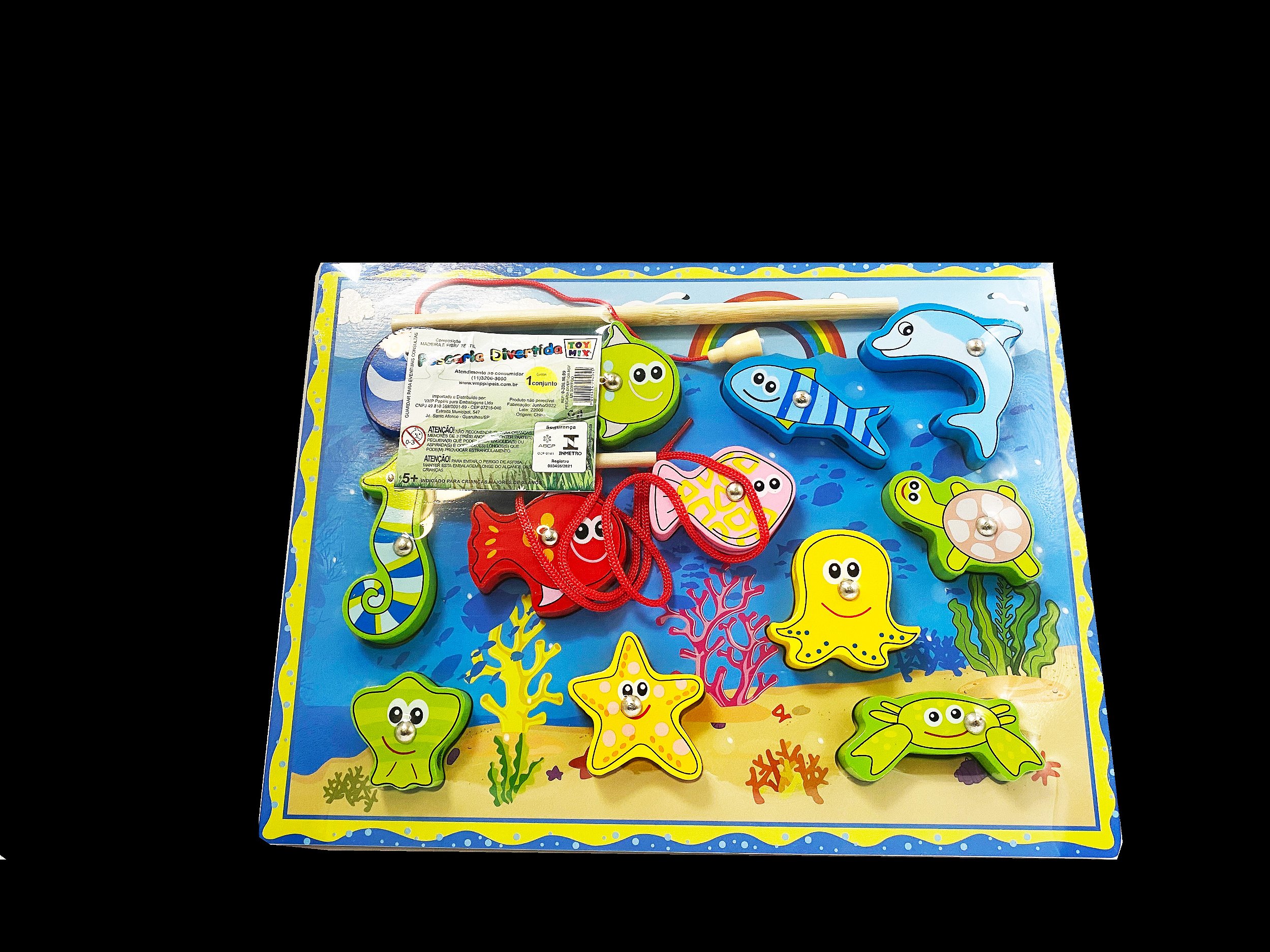 Pescaria magnética : A criança usa uma varinha para "pescar" osanimais marinhos, que se prendem aos magnéticos. Éuma forma divertida de treinar a coordenação motorafina e a precisão.